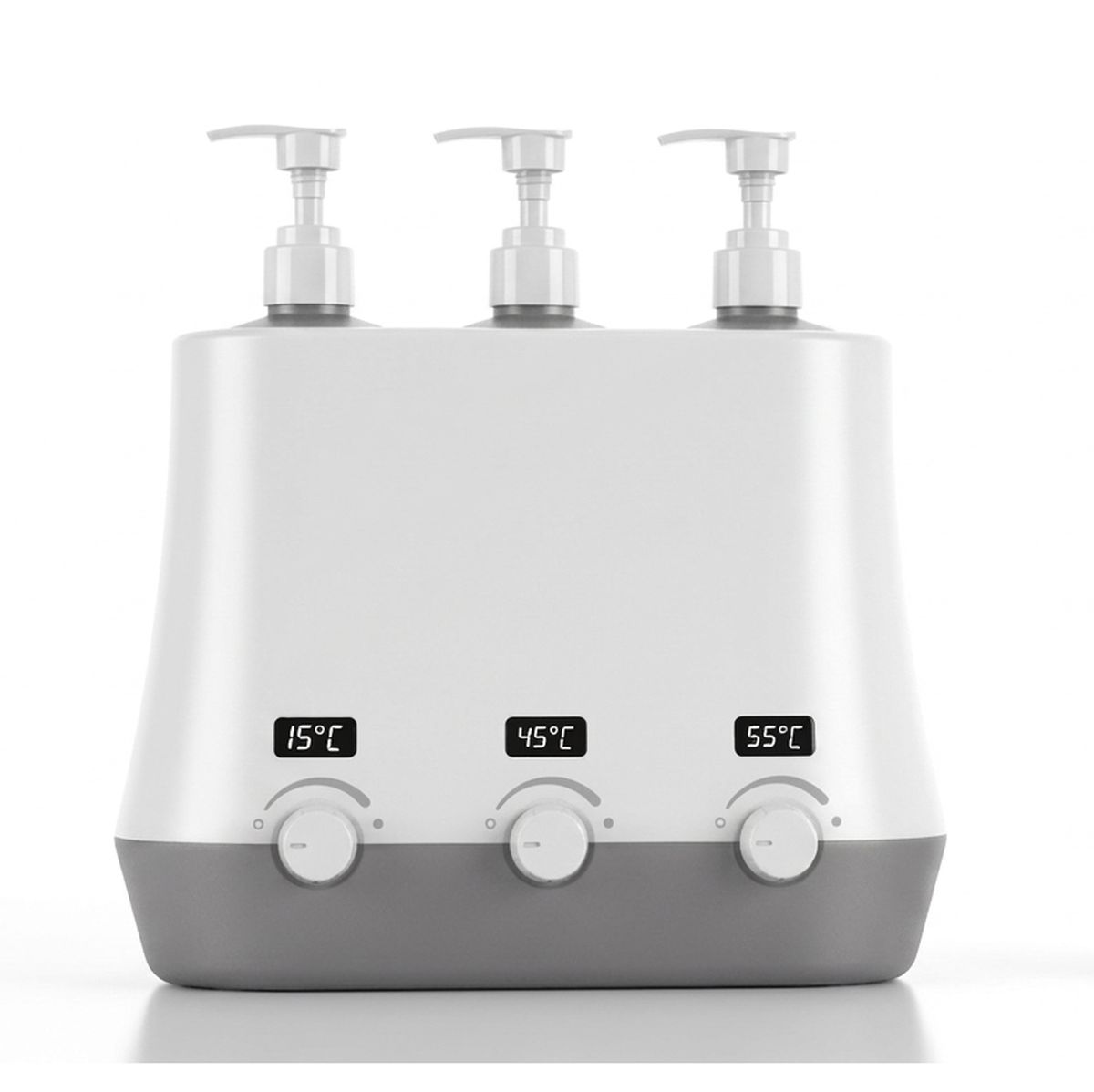 | 🌡️ 3 ערוצים — 3 טמפרטורות עצמאיות כל בקבוק מוסדר בנפרד. אפשר לחמם שמן פנים ב-40°C, שמן גוף ב-50°C ומשחה ב-45°C — בו-זמנית, ללא התפשרות. |